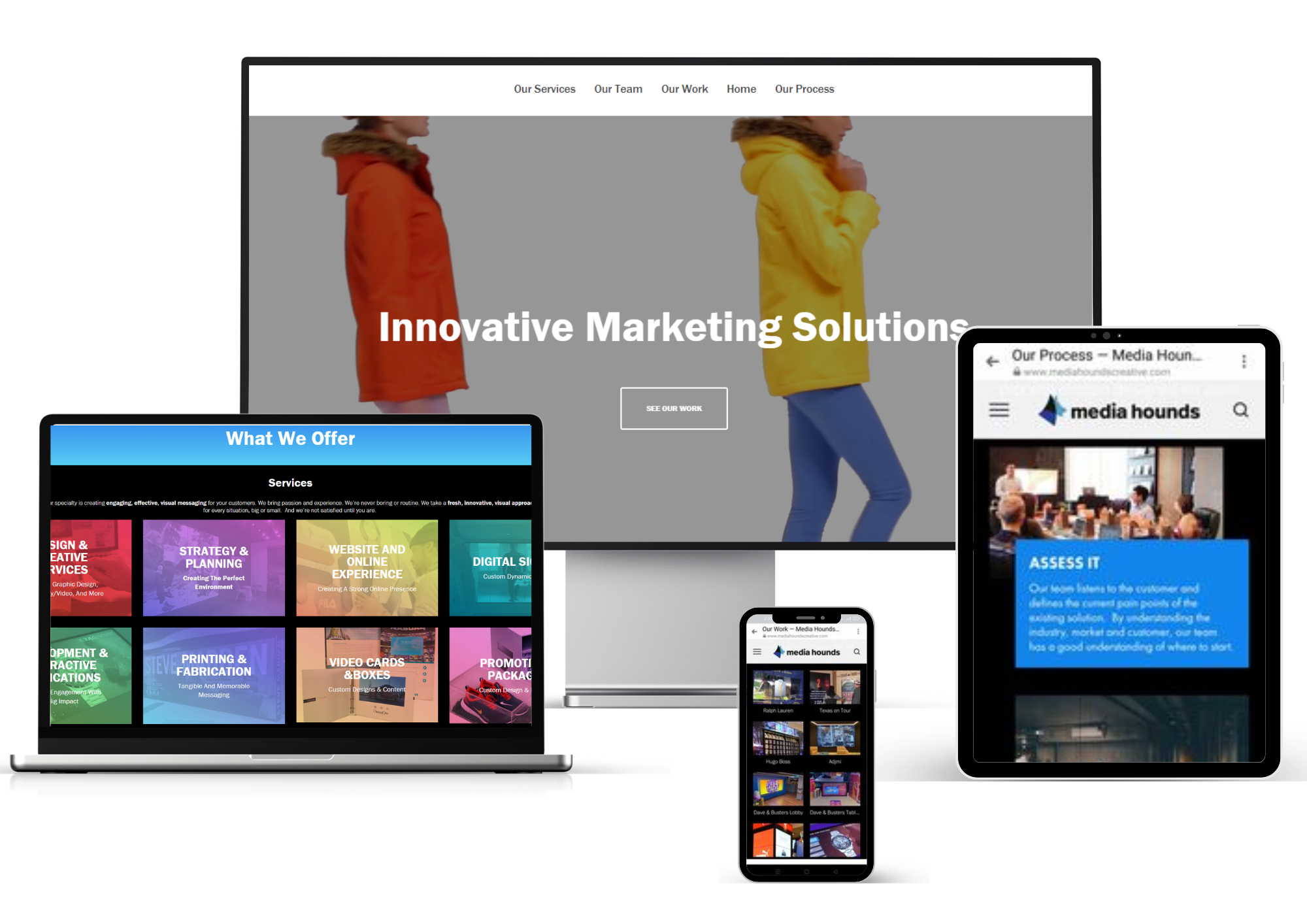 At Media Hounds Creative, we craft innovative visual marketing solutions that connect brands with their audiences in meaningful ways. From concept to execution, we design tailored, cross-media experiences that transform messaging into engaging, results-driven stories. With a collaborative, agile approach, we solve complex brand challenges and create custom strategies that move your business forward.