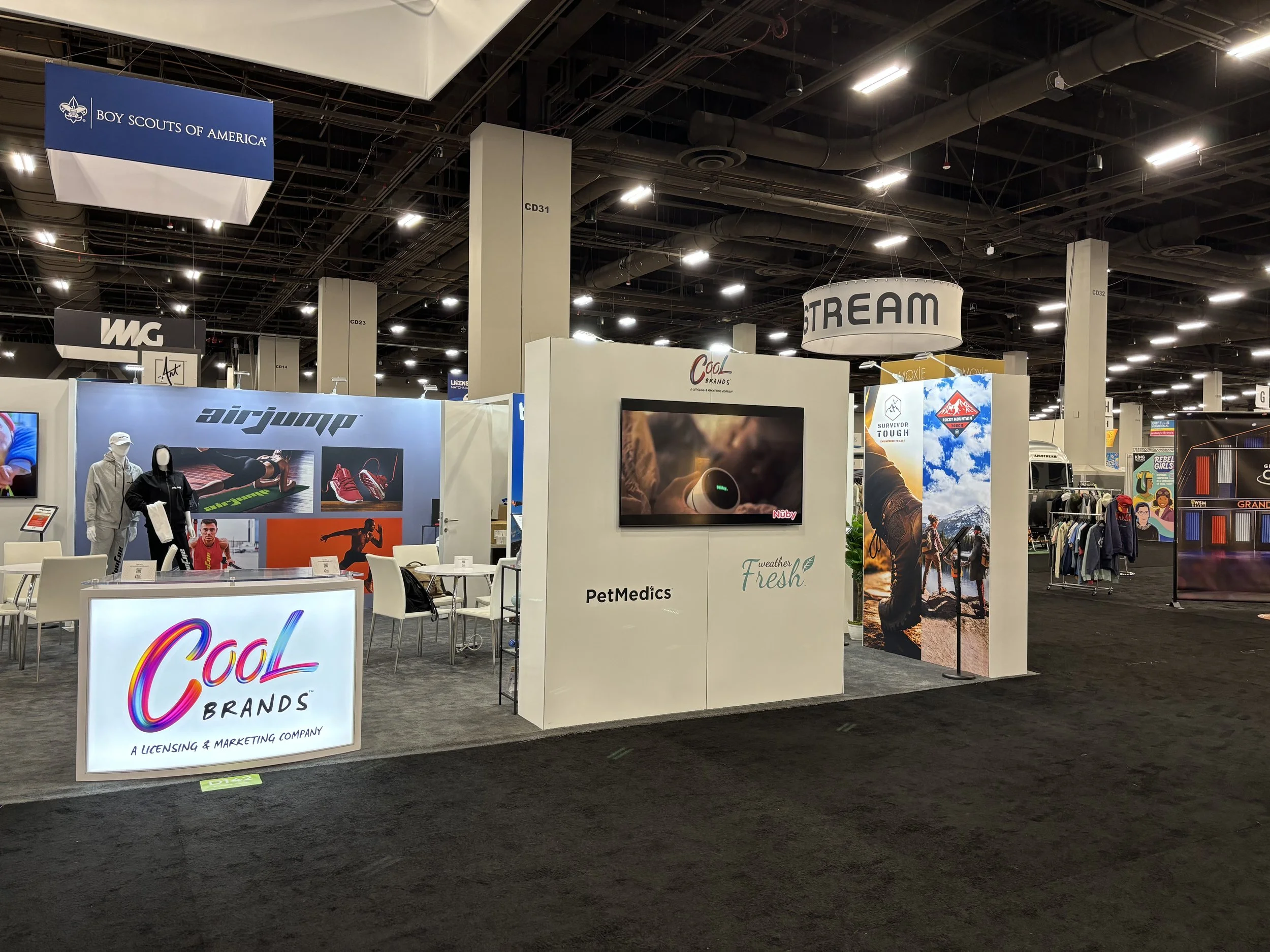 Cool Brands needed a show-stopping presence for their debut at the Licensing Expo 2024 in Las Vegas, where they introduced an array of new brands and served as lead sponsors of the show’s café. The challenge was to create cohesive, high-impact visuals across both spaces that captured their energy and innovation.